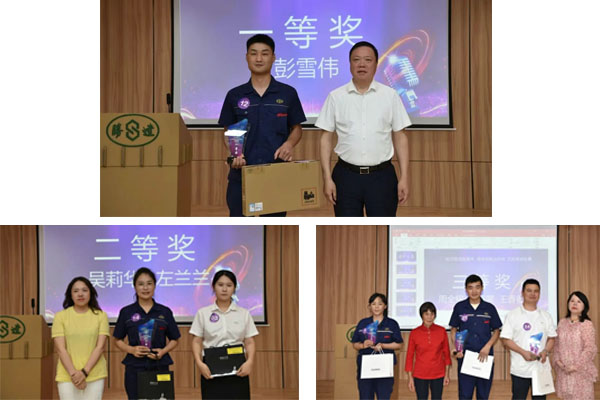 决赛现场,选手们以饱满的热情和专业的表达赢得了评委与观赛者的广泛认可,评委团从主题内容、演讲效果、语言表达、形象展示及时间控制五大维度进行综合评分。最终,彩预印工厂制造部彭雪伟凭借《迎难而上 降本增效》摘得一等奖;股份公司办公室吴莉华、开胜双灯纸业库管部左兰兰获二等奖;浙苏区域营销公司周全铭、智能工厂制造部赵万蒙、开胜双灯纸业安保部王香香获三等奖。集团领导为获奖者颁奖并合影。